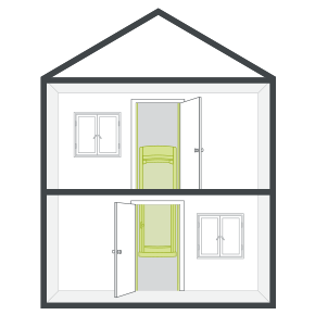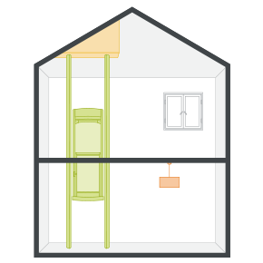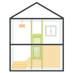 Nuestra instalación más popular: el ascensor conecta la planta baja, como la sala, con la planta superior, normalmente el dormitorio principal.